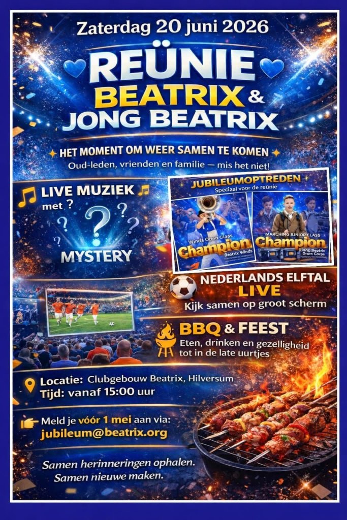 Zaterdag 20 juni is de reünie van Beatrix en Jong Beatrix ter gelegenheid van het 80- en 70-jarig bestaan.