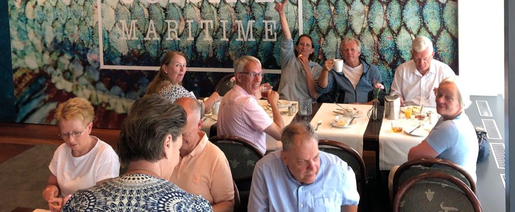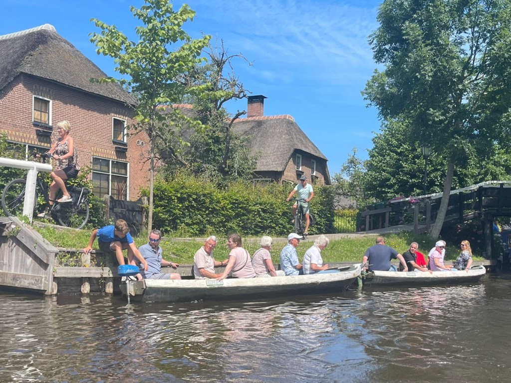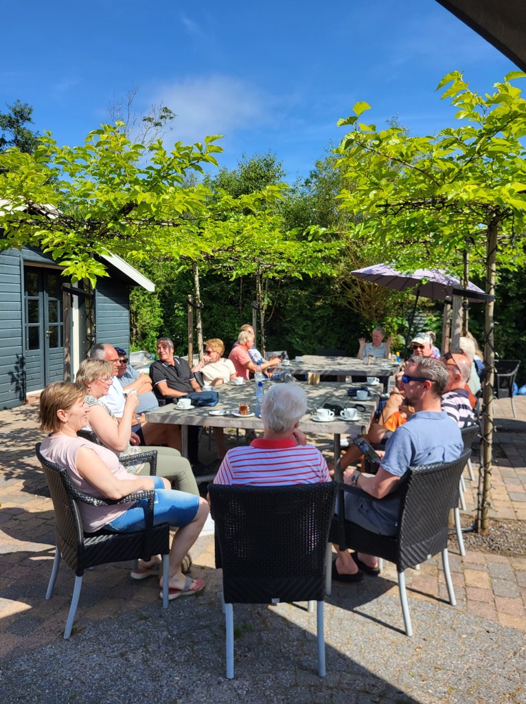 Rond 11:00 uur was (bijna) iedereen aanwezig bij de Witte Hoeve in Giethoorn. We werden ontvangen met koffie, thee en gebak. De sfeer zat er meteen al goed in. En ook het weer werkte fantastisch mee.