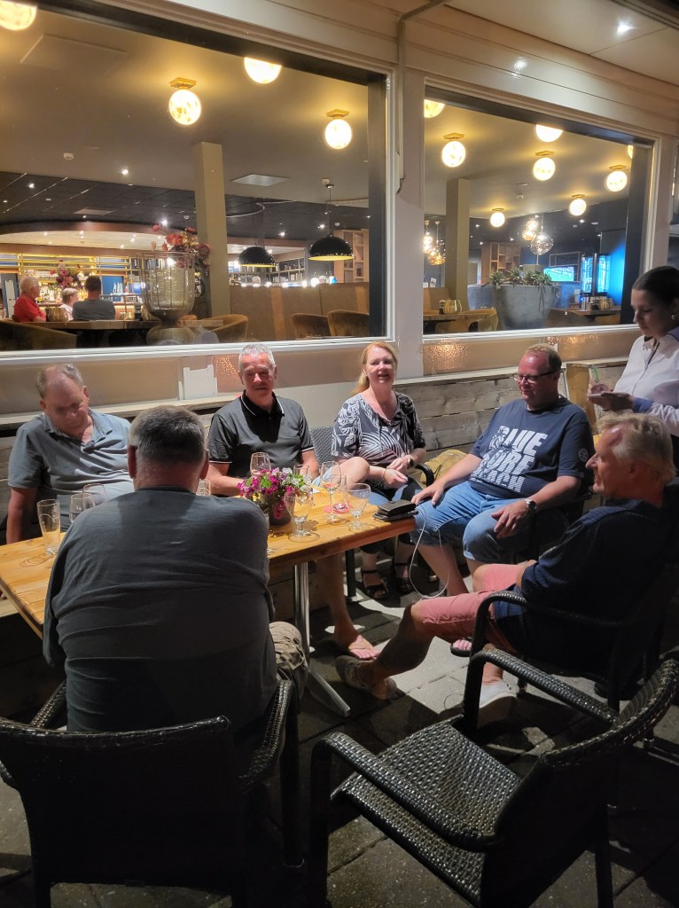 In het hotel meldden de meesten zich al snel op het terras om de dag gezellig met elkaar af te sluiten. Heel laat werd het niet, want om 23.45 werd de laatste ronde aangekondigd. Misschien maar beter ook…..