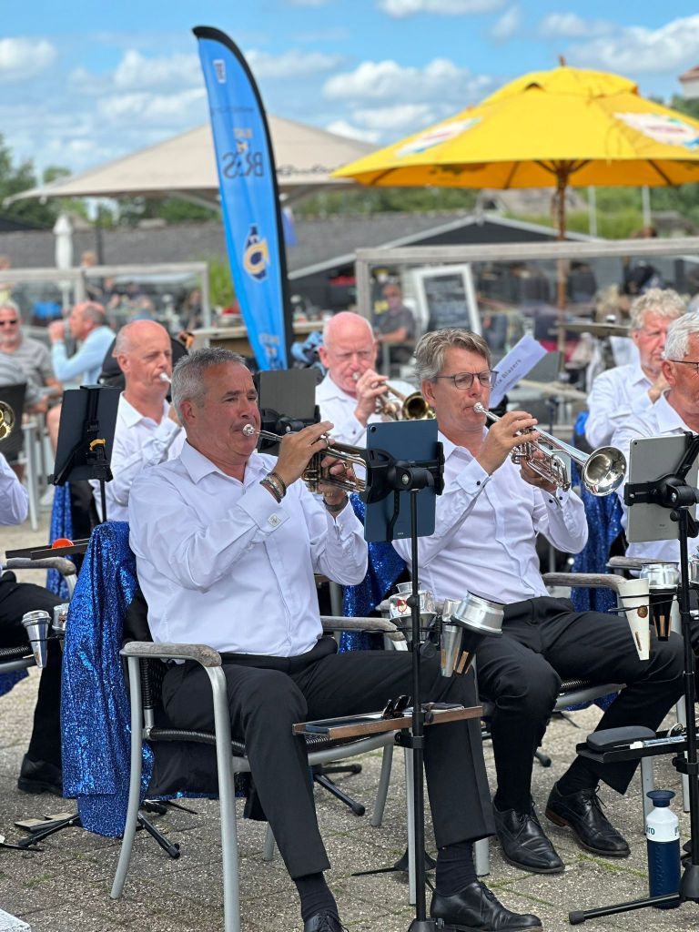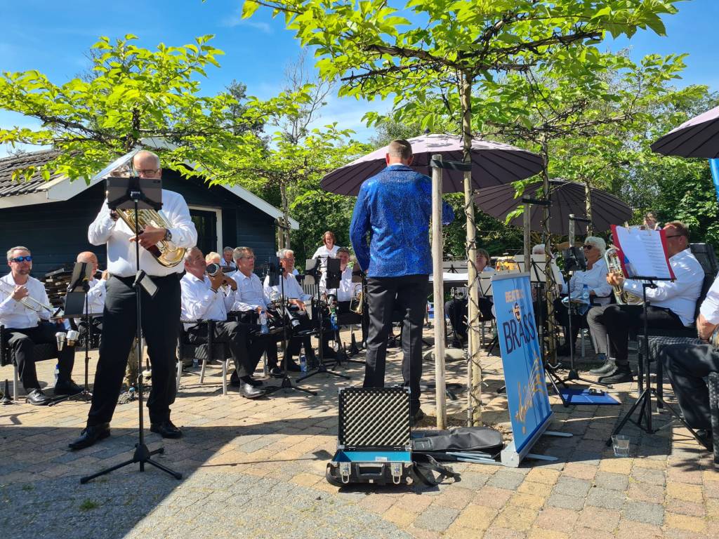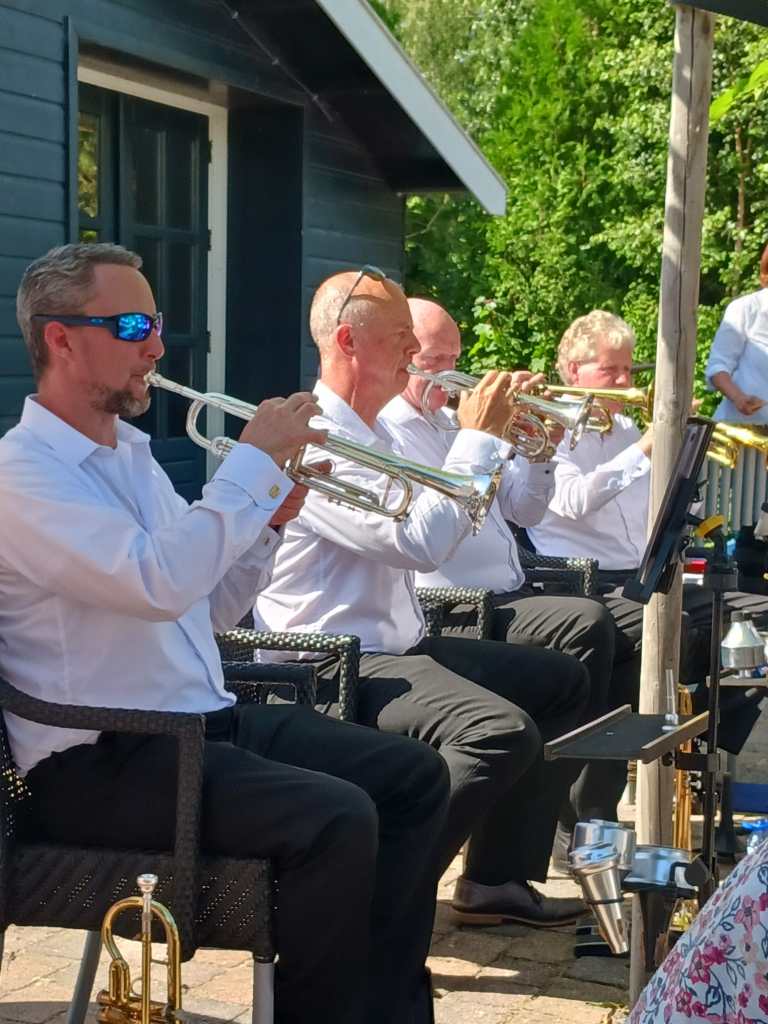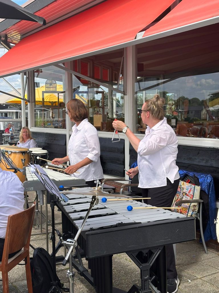 Na het verslepen van het instrumentarium van P1 naar het Paviljoen Smits, wat prachtig midden in het water ligt, maakten we ons hier klaar voor het 2e optreden dit weekend. De zon liet zich wederom van zijn beste kant zien, en het was dan ook best warm. Het optreden was een succes, we hadden zelfs fans die de dag ervoor ook al hadden geluisterd.