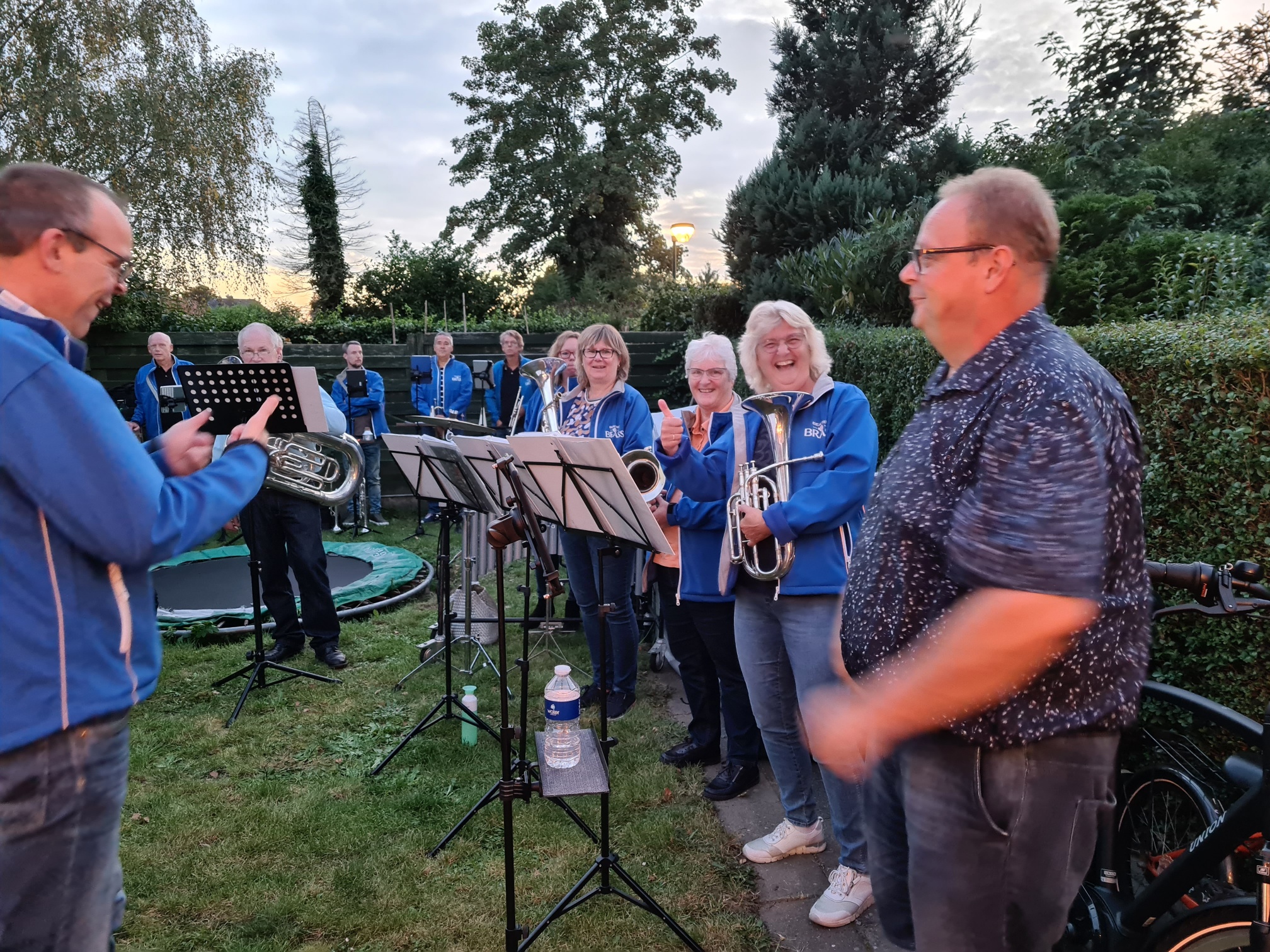 Afgelopen zaterdag avond rond 19:45 hebben we onze Gerrit in het zonnetje gezet. Er was voor hem een surpriseparty georganiseerd omdat hij recentelijk 70 jaar is geworden. En natuurlijk konden wij daar niet ontbreken. Ergens in Zeist werd hij door familie en vrienden opgewacht voor het huis en in de achtertuin stonden wij al klaar. Het was wel weer even wennen, want door de Corona crisis hadden we al ruim anderhalf jaar niet opgetreden. Ondanks dat sommige wat zenuwachtig waren kregen we zelf applaus uit de naast gelegen tuinen.