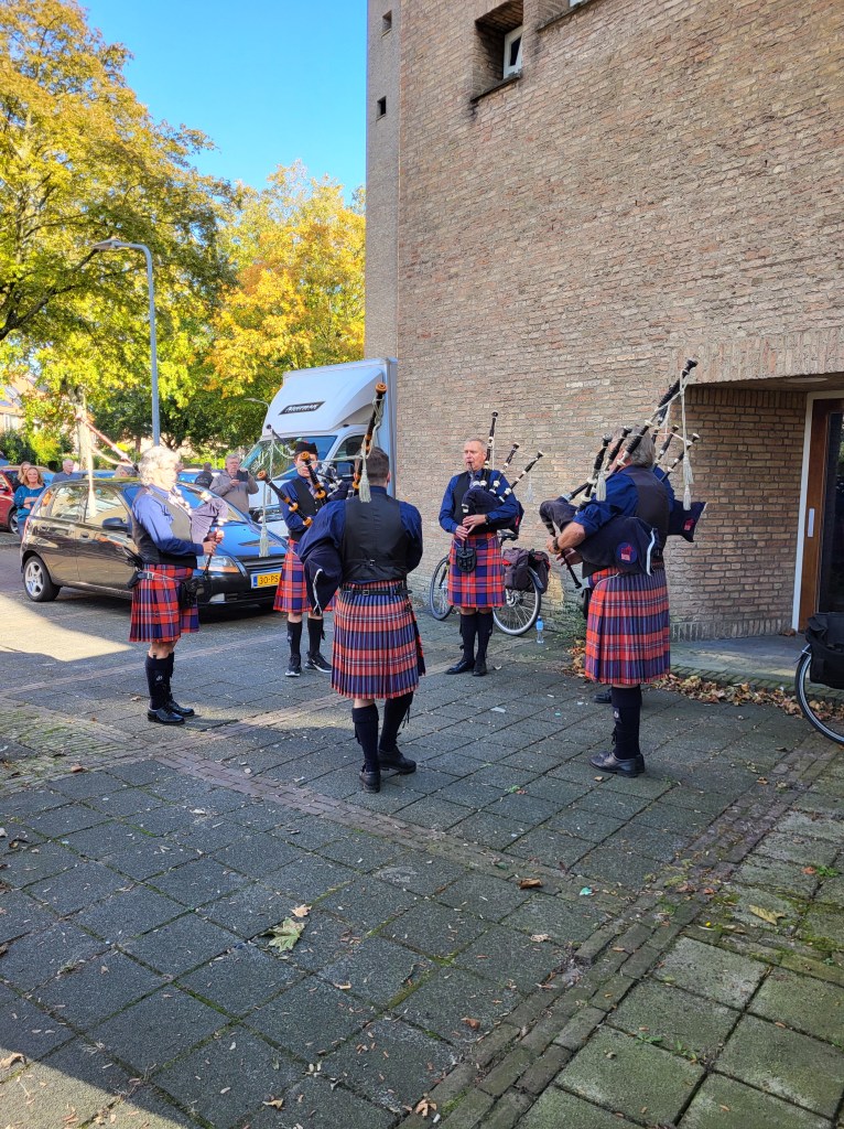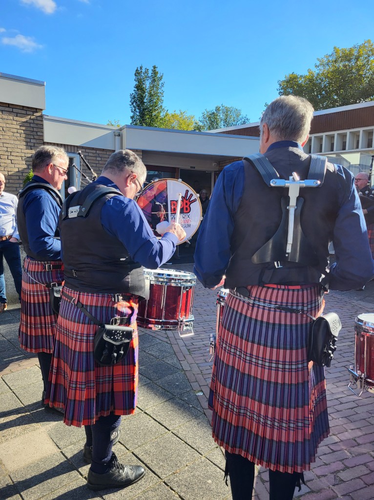 Om 16:00 uur was het tijd om het gerepeteerde te laten horen aan de toegestroomde belangstellenden. Bijzonder was het intro van The Beatrix’ Pipe Band, welke binnenkwam met “Scotland, the Brave”, wat daarna gezamenlijk uitgespeeld werd.