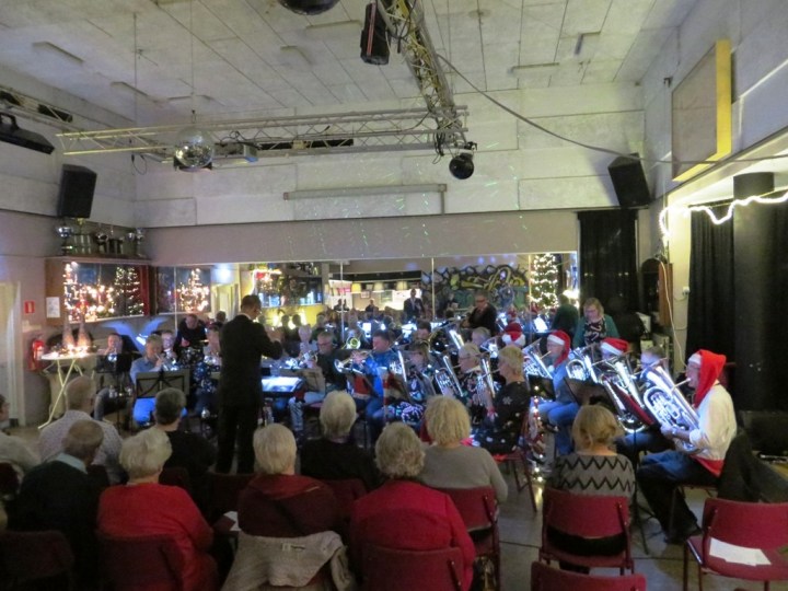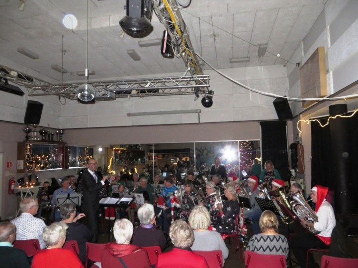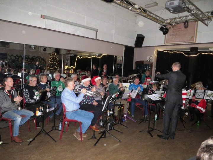 Na enkele nummers te hebben gespeeld was het pauze. Even luchten, want met ca. 70 man in de zaal wordt het al snel aangenaam warm. Onder het genot van een bakje koffie of thee en een door de evenementen commissie verzorgde versnaperingen werd al gezellig bijgepraat over het afgelopen jaar en andere zaken.