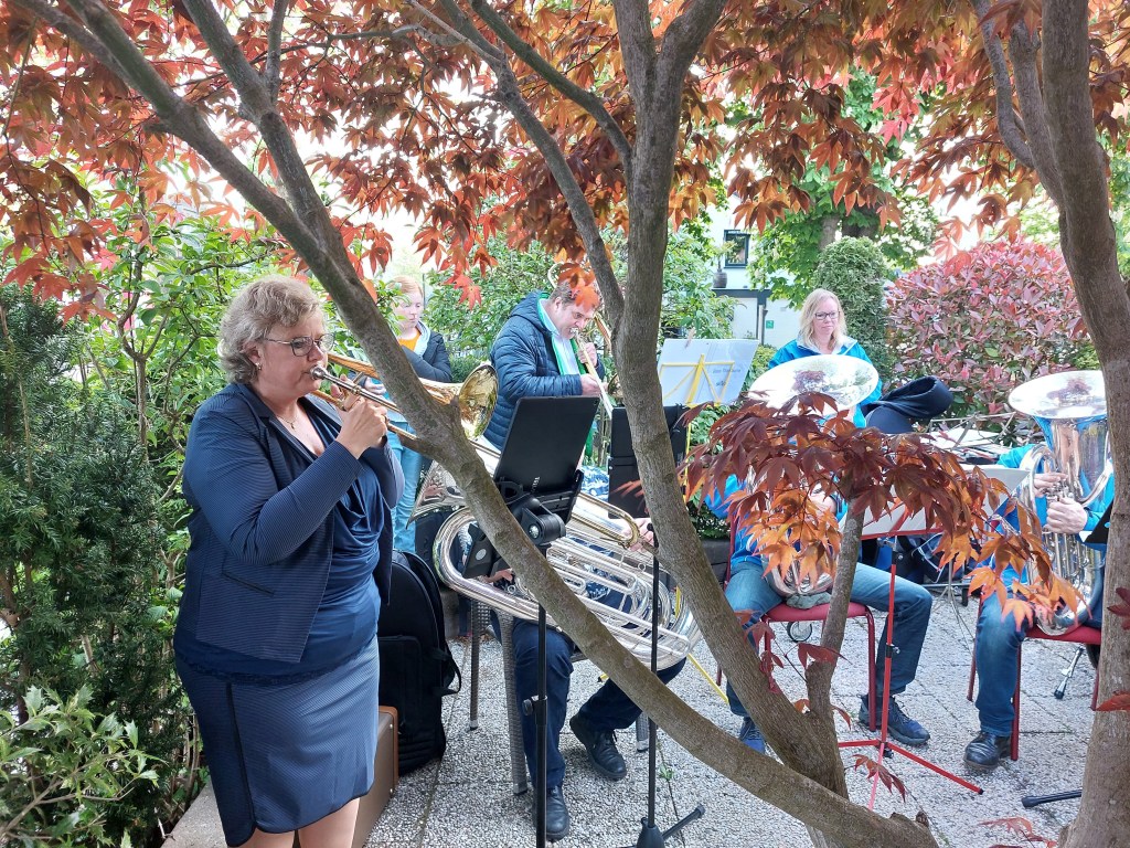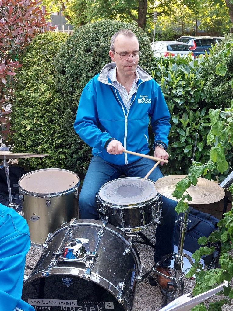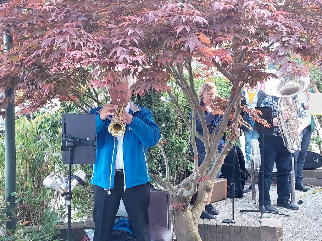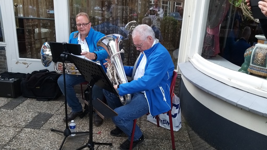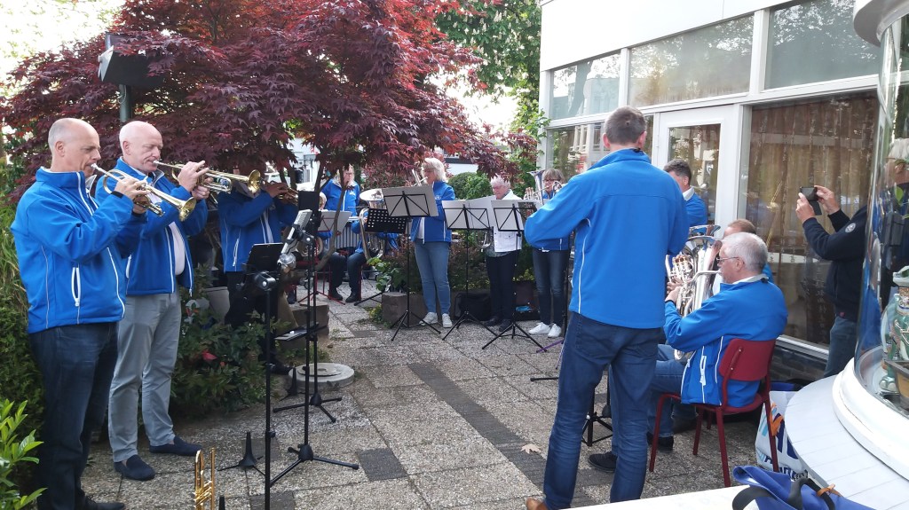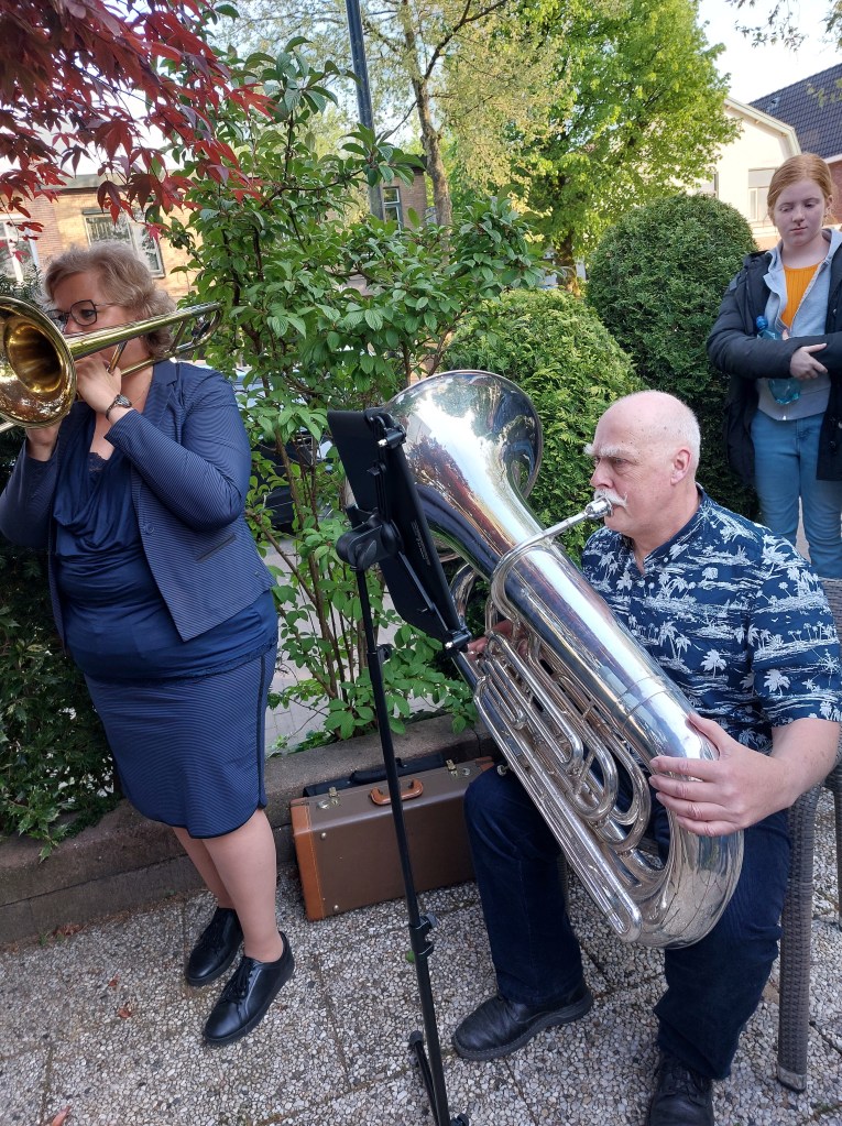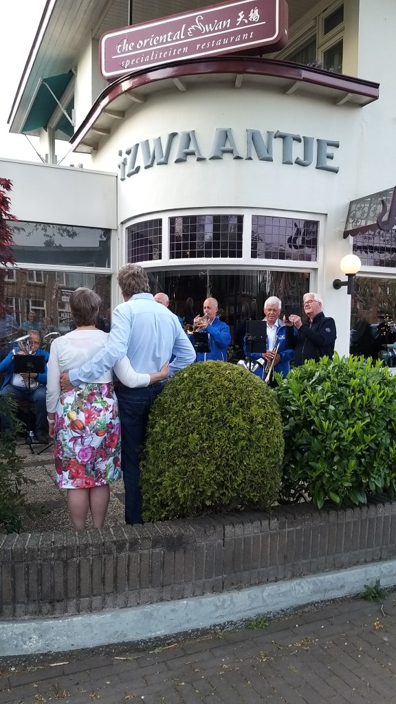 Afgelopen zaterdag was een heugelijke dag voor één van onze leden en zijn vrouw, die overigens ook lid is geweest van onze vereniging(en). Sterker nog, via de muziek hebben zij elkaar destijds leren kennen. Pim en José vierden hun 40 jarige huwelijk en hadden gevraagd of wij een muzikale bijdrage wilde leveren. Nou, dat hoef je natuurlijk geen tweede keer te vragen. De locatie: “The Oriental Swan” in Soesterberg, alwaar zij met familie en naasten een gezellige avond hadden. Het weer zat mee, het podium was wat klein (hahaha) maar erg sfeervol en natuurlijk wat vrolijke noten om het bruidspaar toe te spelen. En zelfs een gastspeler op de Bas. Hieronder een collage van dit optreden.